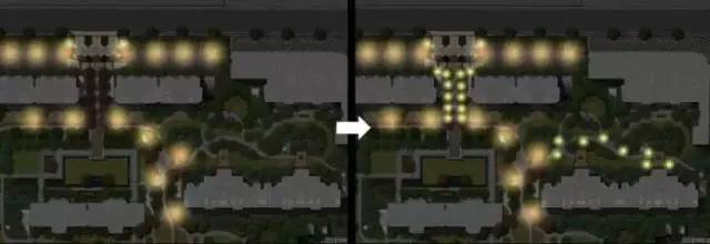 光线感应 × 因为没有足够的大树庇荫,很多社区一到夏天地面就变得炙热无比,甚至老人孩子都不敢出来活动。